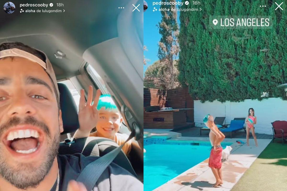 Ao lado dele está Dom, Bem e Liz, fruto do ex-relacionamento entre Scooby e Luana Piovani, aproveitando o verão norte americano. No vídeo compartilhado nos stories, Scooby fala: “Chegamosssss, vamos L.A”, e contagia os filhos.