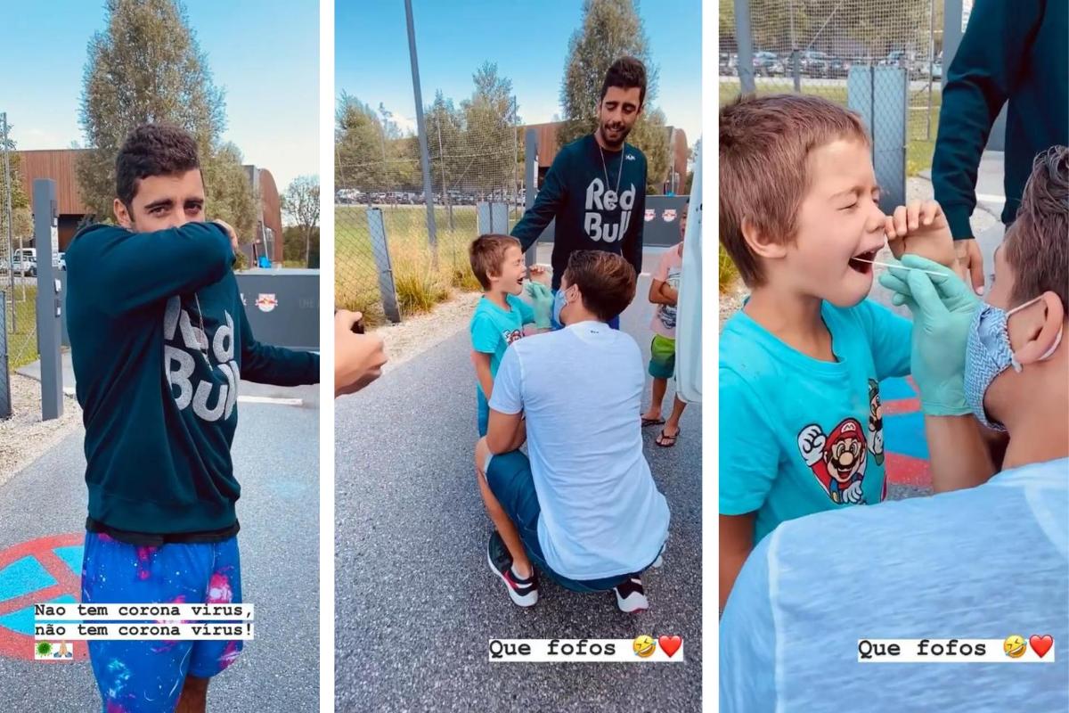 Pedro Scooby e os filhos, Bem, de 4 anos, e Dom, de 8 anos, realizaram um teste para o novo coronavírus na manhã desta terça-feira, 28 de julho na Áustria, durante a viagem que eles estão fazendo pela Europa. Para o exame rápido, em que o resultado sai em cerca de uma hora, um enfermeiro retirou saliva com um cotonete da boca da família.