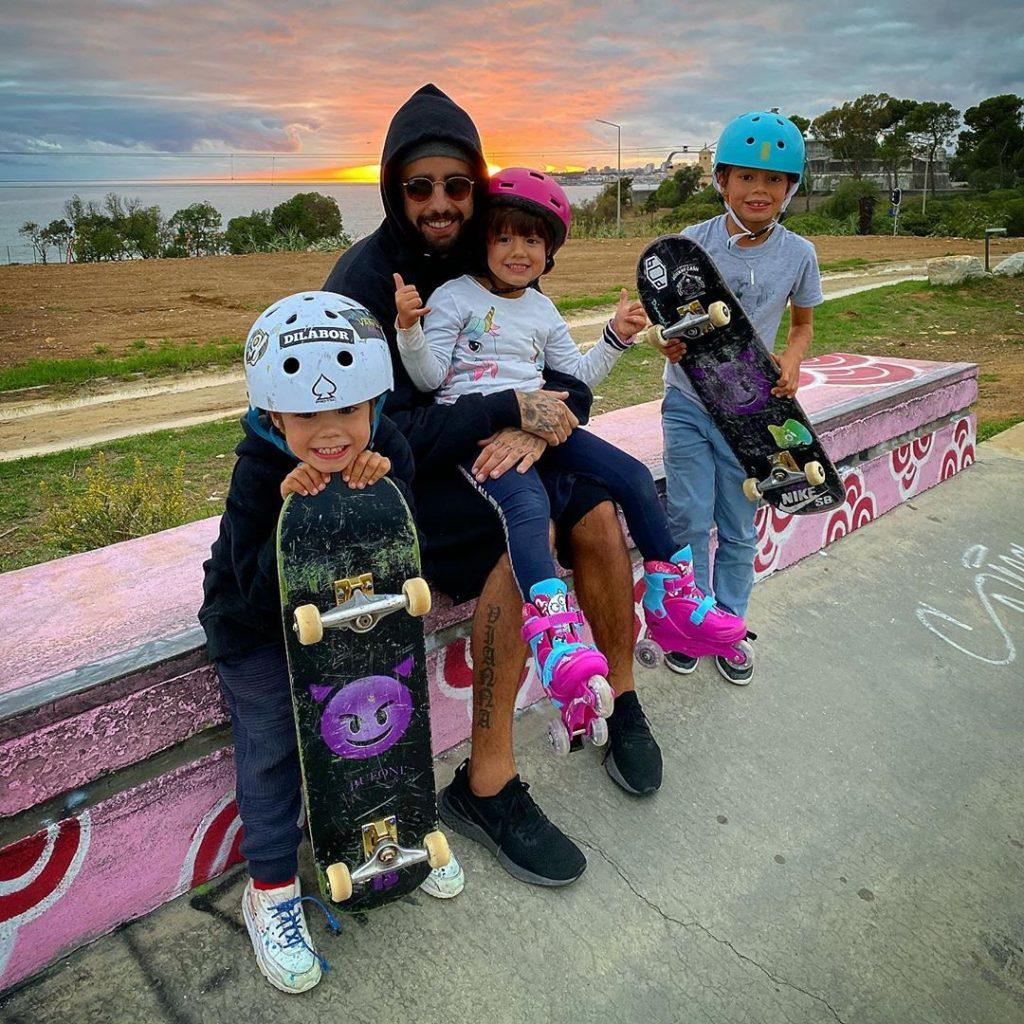 Além disso, provou que está ensinando a eles a sua grande paixão: o skate. Em sua conta do Instagram, Scooby publicou um vídeo de Dom, o filho mais velho, andando de skate e se declarou.