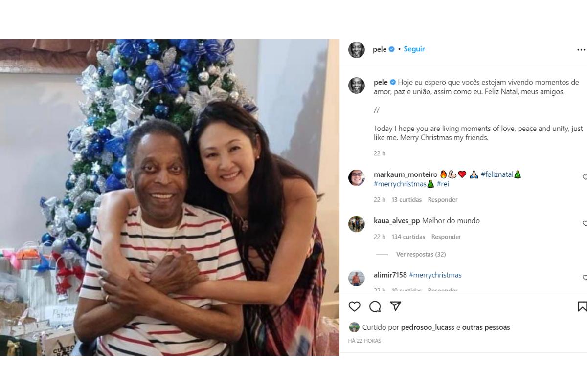 “Hoje eu espero que vocês estejam vivendo momentos de amor, paz e união, assim como eu. Feliz Natal, meus amigos.”, escreveu Pelé na legenda da publicação.