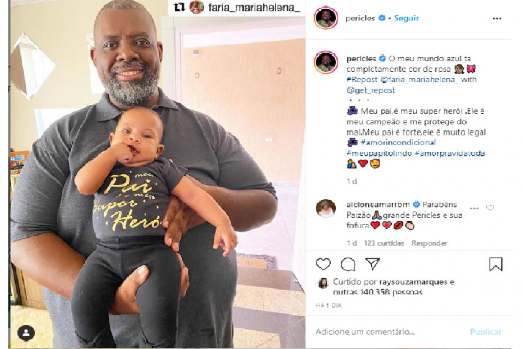 O cantor Péricles compartilhou a primeira foto com a filha nos braços após ter deixado o hospital. No mês passado, o cantor precisou ser hospitalizado por causa de uma infecção urinária. Ele passou cerca de cinco dias internado no hospital Vila Nova Star, na Vila Nova Conceição, em São Paulo e recebeu alta no dia 26 de maio.