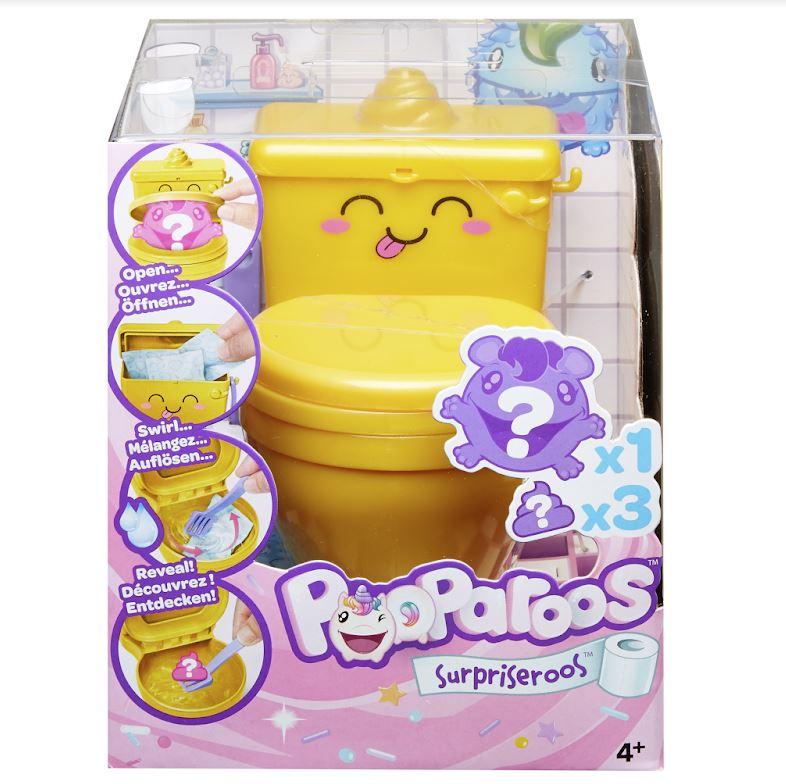 Os brinquedos vêm acompanhados de um banheiro colorido, com três pacotes de papéis que dissolvem na água para alimentar os animais. Quando a criança alimenta o Pooparoo, ele fará cocô colorido e cheio de glitter. Cada unidade custa em média R$ 129, 99 e já está à venda na Ri Happy.