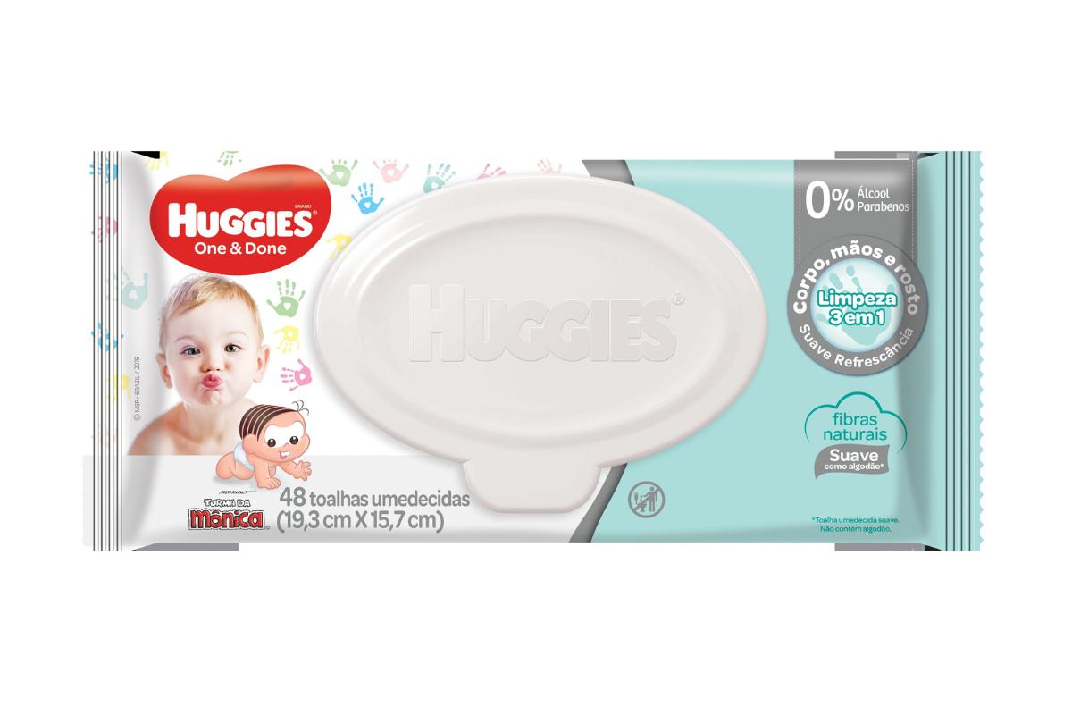 Uma das maiores marcas de cuidados para o bebê é a Huggies, ela faz parte da Kimberly-Clark e conta com fraldas, toalhas umedecidas e pomadas para assadura no catálogo. As toalhas umedecidas são: Max Clean, Supreme Care, Puro e Natural e One & Done. Essa última foi um dos destaques nacionais do BASES Top 25 Breakthrough Innovations da América Latina 2020, levantamento anual da consultoria Nielsen Global Connect.