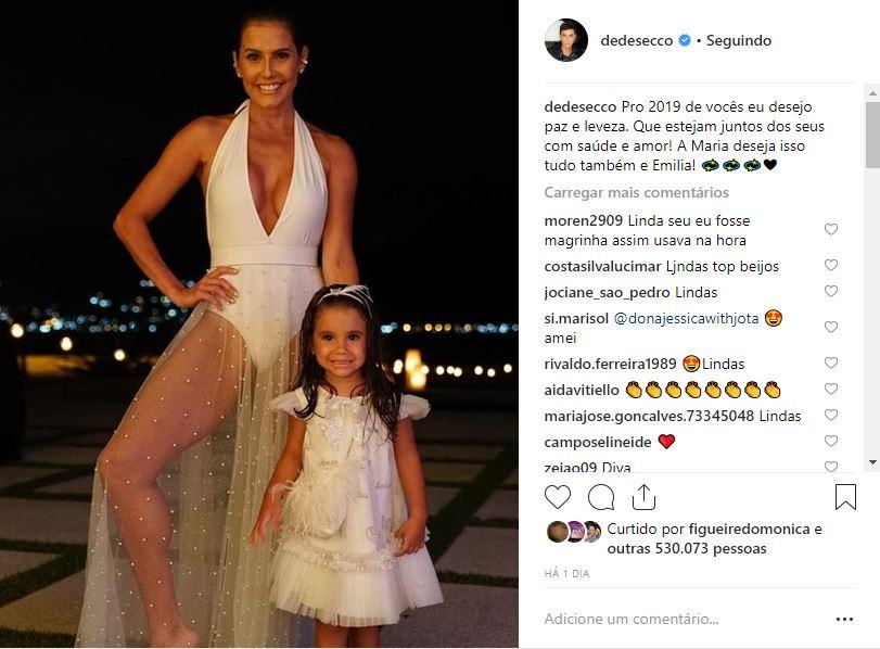 O clique ganhou muitos elogios dos fãs, que também notaram um detalhe na legenda: “Para o 2019 de vocês, eu desejo paz e leveza. Que estejam juntos dos seus com saúde e amor! A Maria deseja isso tudo também e Emília!”, escreveu Deborah.