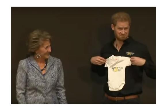 Harry, recebeu uma roupa de bebê para o filho, Archie, como presente da princesa Margriet da Holanda no dia 9 de maio. A atitude aconteceu no primeiro dia de trabalho dele após o nascimento do bebê, quando assinalou marco de um ano até a edição de 2020 do Invictus Games, evento que fundou para veteranos militares lesionados.
