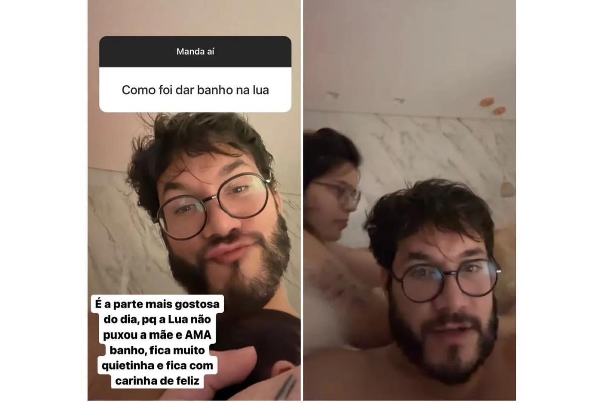Ainda nas redes sociais, ele disse sobre os cuidados desde o nascimento para evitar assaduras. Ele disse que o casal usava algodão e pomada, mas que vão mudar a forma por conta das assaduras.