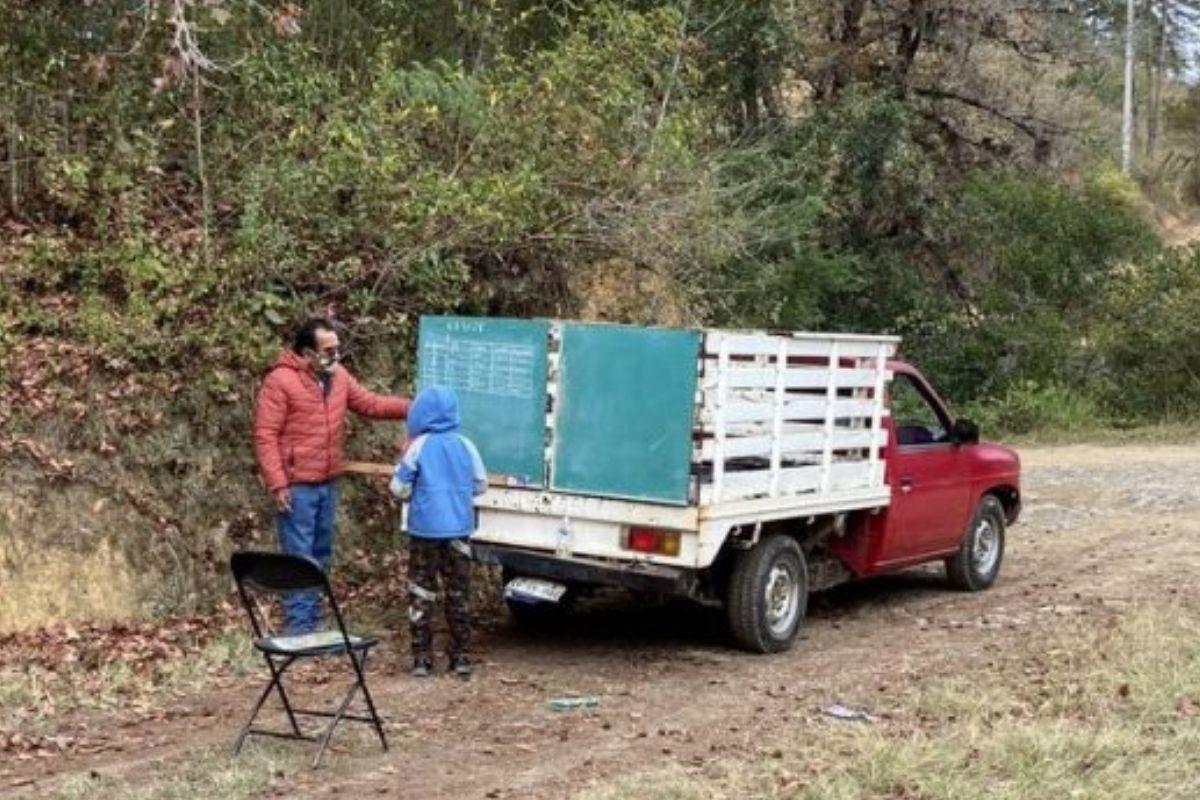 Morador de La Sierra de Querétaro, uma cidade quase toda rural, Salvador prendeu uma lousa na parte de trás do veículo e começou a dar aulas perto da casa dos alunos, ao ar livre. A cena viralizou depois que um morador registrou o momento e publicou no Twitter.