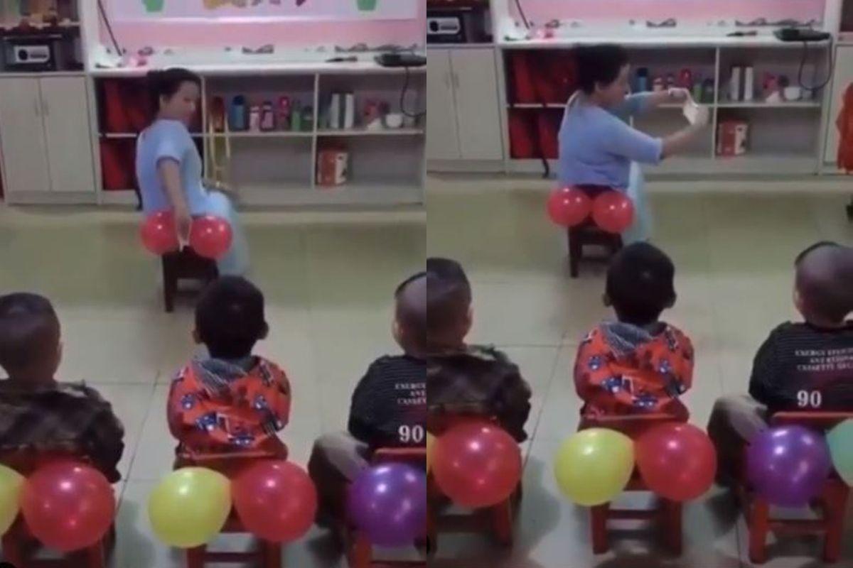 Um vídeo está fazendo o maior sucesso na internet: uma professora teve uma ideia super diferente para ensinar aos alunos como se limpar após ir ao banheiro. Na sala de aula, a professora amarrou duas bexigas nas cadeiras e passou um papel entre elas, ensinando como as crianças devem fazer quando forem ao banheiro.
