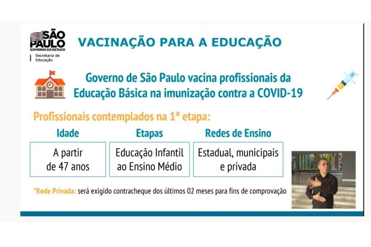 A vacinação de professores no estado de São Paulo se inicia em 12 de abril (Foto: Reprodução Governo de São Paulo)