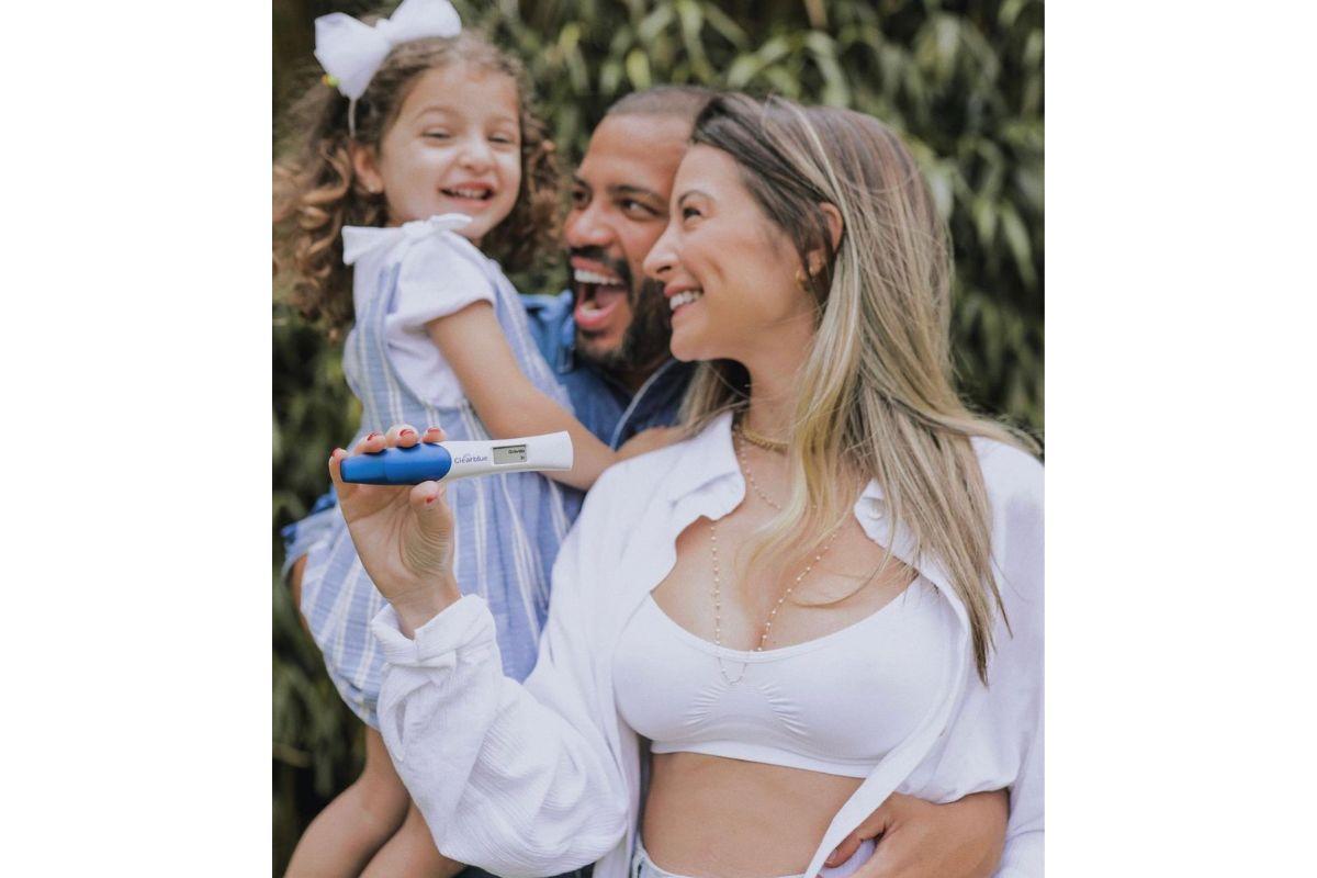 “Estamos grávidos!! Com muita alegria a gente vem compartilhar com vocês que Marieva foi promovida a irmã mais velha, e nosso Otto está a caminho. Graças a @clearblue nós tivemos certeza da gravidez mesmo 5 dias antes do atraso menstrual. A precisão do teste é de 99,9% então sempre indicamos a utilizarem os produtos da linha em qualquer caso de suspeita ou sintomas”, disse ela na legenda.