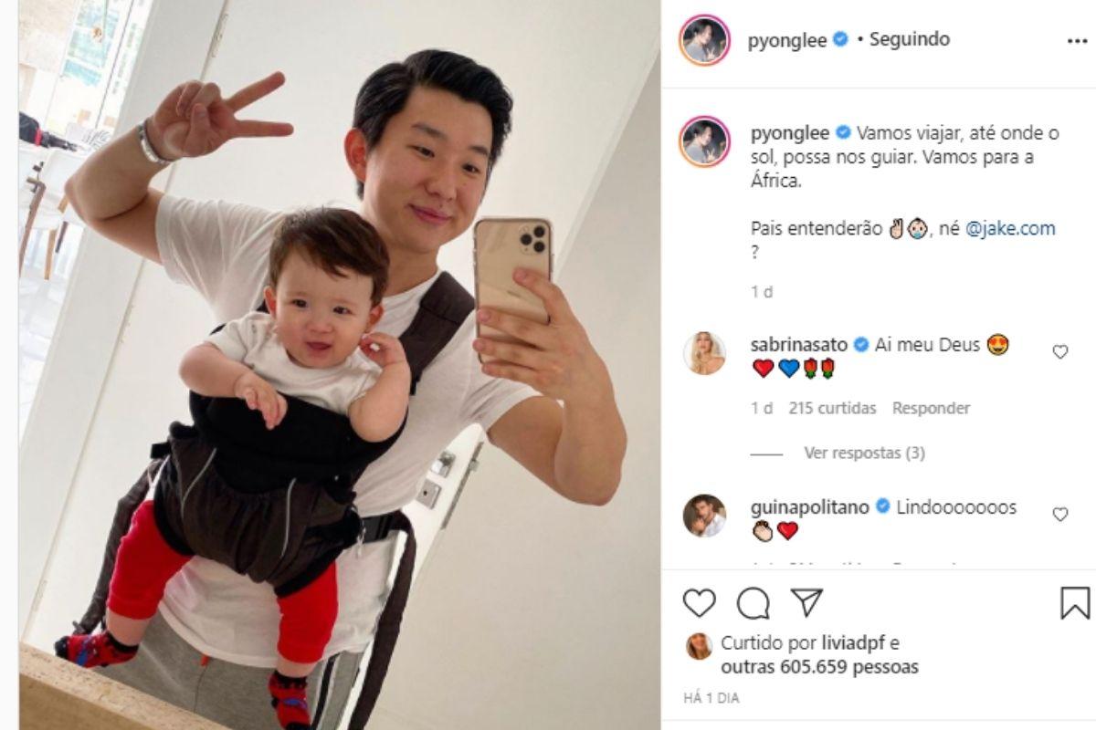 O ex-BBB e influenciador digital Pyong Lee usou as redes sociais para compartilhar uma foto cheia de amor com o filho, Jake, de 8 meses, fruto do relacionamento com Sammy. Na imagem, os pai e o filho aparecem sorrindo em frente a um espelho. Na legenda, ele fez uma brincadeira relacionado a um desenho infantil que apenas os pais de crianças pequenas vão entender!