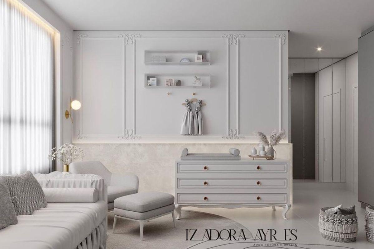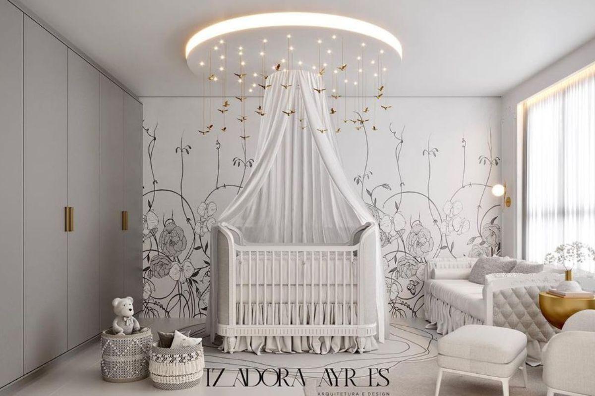 A mãe de Maria Alice e Maria Flor contou que pediu para que os detalhes do ambiente fossem dourados. “É um projeto bem excêntrico”, afirmou a arquiteta. A profissional também explicou que buscou agregar aspectos da natureza ao quarto da bebê.