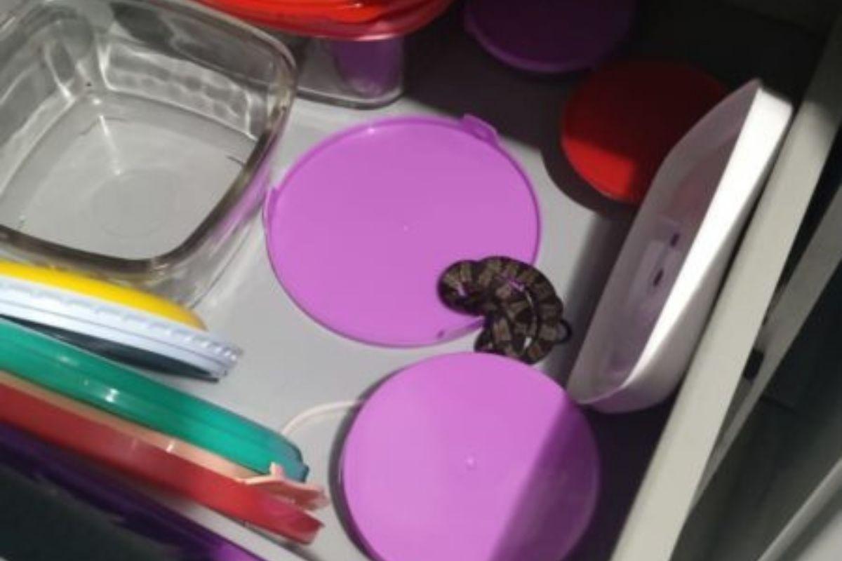 Um morador de Timbó no Vale do Itajaí encontrou uma cobra dentro de um dos potes na cozinha, nesta segunda-feira. O morador ficou desesperado e chamou o bombeiro para retirar o animal do local. Segundo o bombeiro a cobra era da espécie “dormideira”.