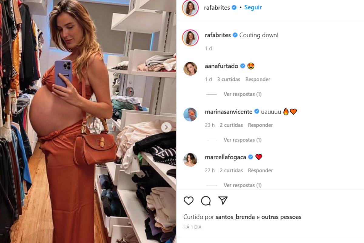 Couting down! [Contagem regressiva]”, escreveu ela em inglês na legenda da publicação. Nos comentários, os seguidores dispararam elogios. “Lindaa mamãe!”, escreveu a dupla Maria Cecília e Rodolfo, que também está a espera do segundo filho. “Ta Linda! Boa hora pra vocês”, desejou o ator Marcos Veras.