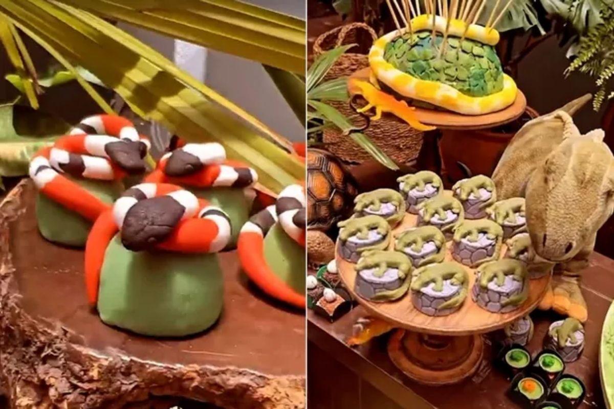 Através do Stories do Instagram, a apresentadora filma uma área repleta de plantas e decoração inspirada em dinossauros e répteis feita por Andrea Guima