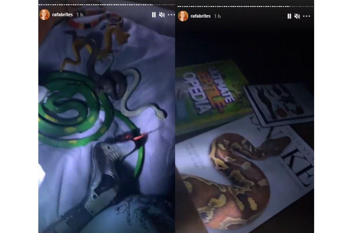 Rafa Brites publicou uma série de stories no Instagram que divertiu os seguidores. Isso porque, em registros do quarto de Rocco, com 3 anos de idade, a apresentadora revelou o brinquedo preferido inusitado do filho: cobras! Os vídeos publicados mostram vários tipos de cobras – de pelúcia, de plástico, de madeira… – e os seguidores se divertiram com a escolha inusitada do menino.