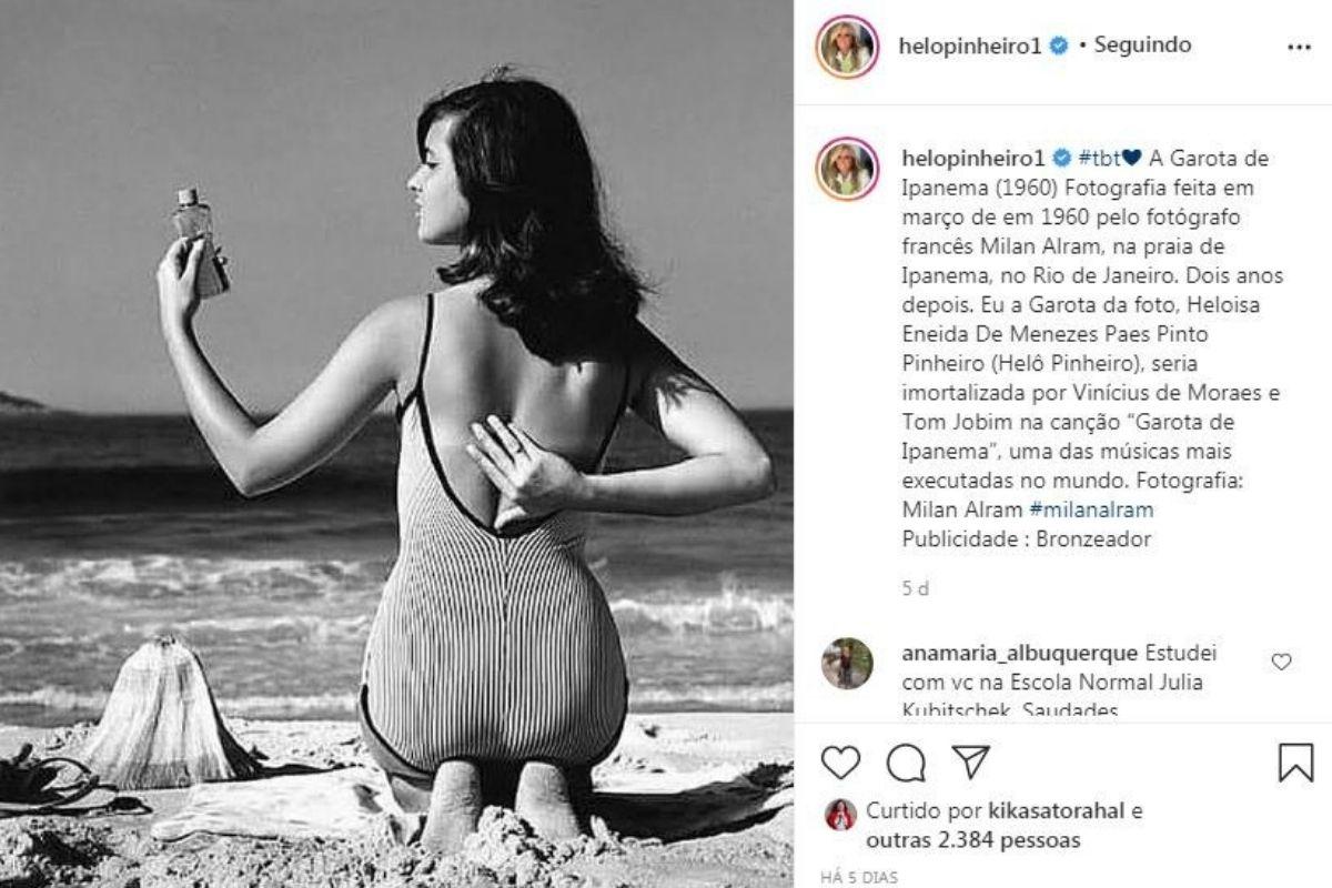 Recentemente, inclusive, Helô Pinheiro chegou a relembrar o sucesso ao compartilhar uma foto em que ela aparecia posando para propaganda de bronzeador. O clique teria servido como inspiração para Tom Jobim. “A Garota de Ipanema. Fotografia feita em março de 1960 pelo fotógrafo francês Milan Alram, na praia de Ipanema, no Rio de Janeiro. Dois anos depois eu, a garota da foto, Heloísa Eneida de Menezes Paes Pinto Pinheiro (Helô Pinheiro), seria imortalizada por Vinícius de Moraes e Tom Jobim na canção ‘Garota de Ipanema’, uma das músicas mais executadas do mundo”, disse.