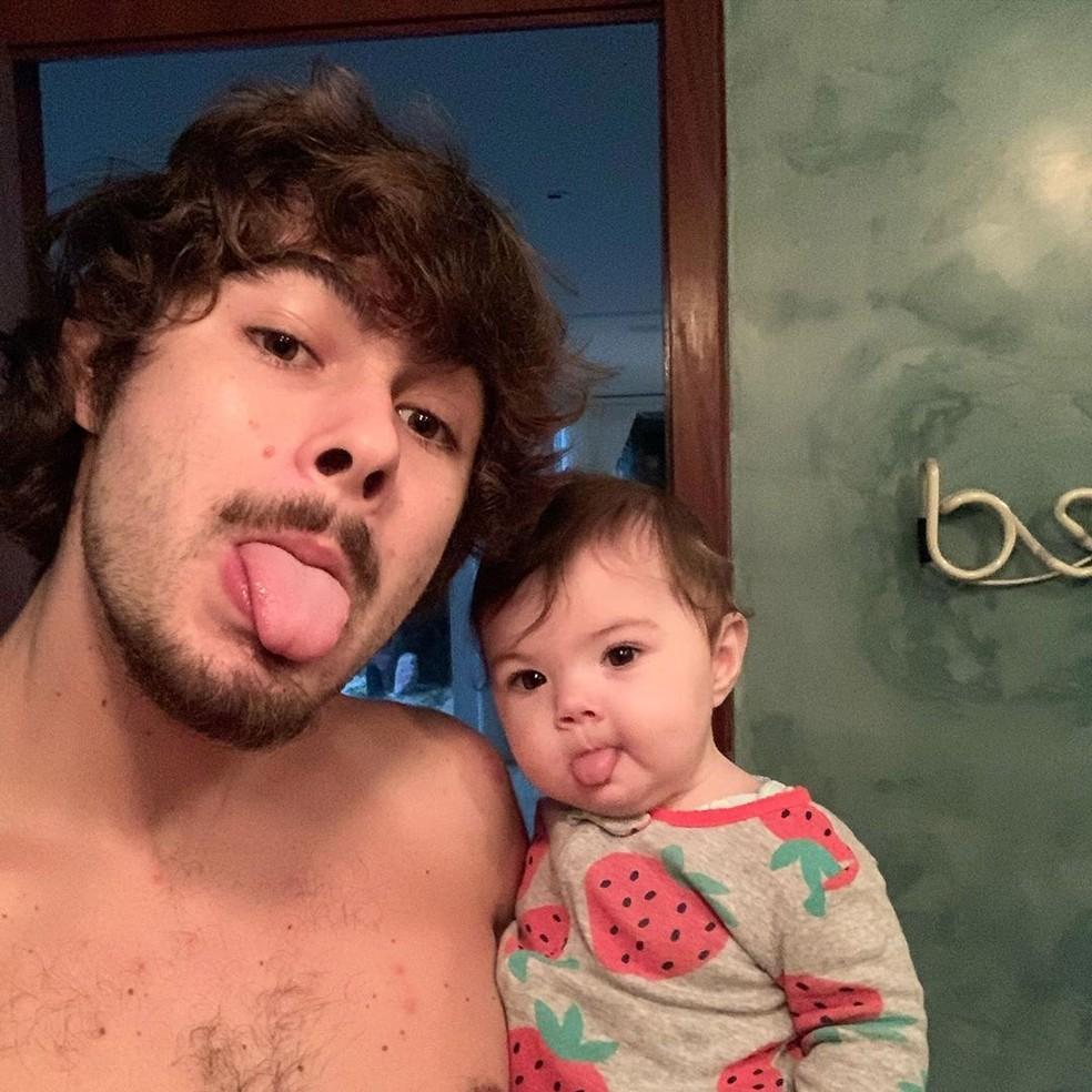 “Aprendeu a mostrar a língua, primeiro passo pra rebeldia”, escreveu Rafa, na legenda da foto.