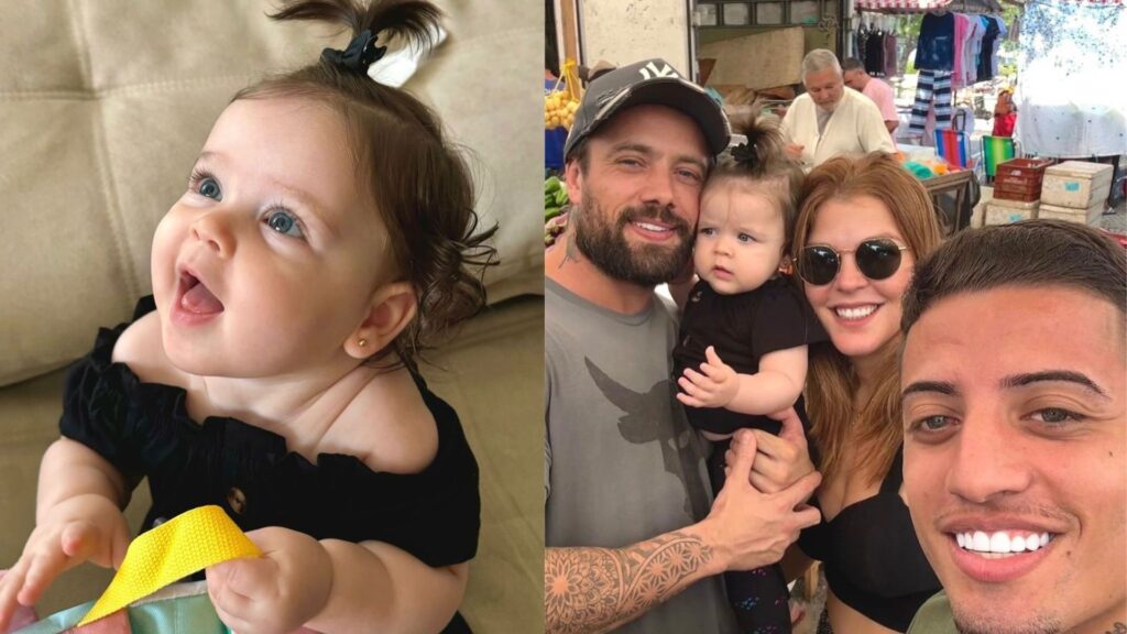 Nos registros ele aparece com um amigo, sua esposa, a psicóloga Carol Ferraz e a filha deles, Helena, de quase um ano. A bebê é a primeira filha do ator após a separação da ex-mulher, Mariana Bridi, com quem tem Aurora, de 8 anos, e Valentim, de 4 anos.