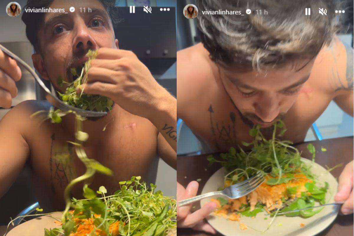 Ator foi filmado por Vivian Linhares comendo uma salada (Foto: Reprodução/ Instagram)