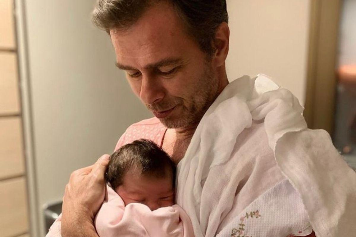 Rafa e João são muito parecidos e a semelhança entre eles costuma chocar bastante. Entrando no embalo, ele publicou duas fotos do pai em momentos iguais, mas em épocas diferentes. Na primeira, João aparece jovem com o filho ainda bebê no colo. Na segunda, quem ele carrega nos braços é Clara Maria recém-nascida.