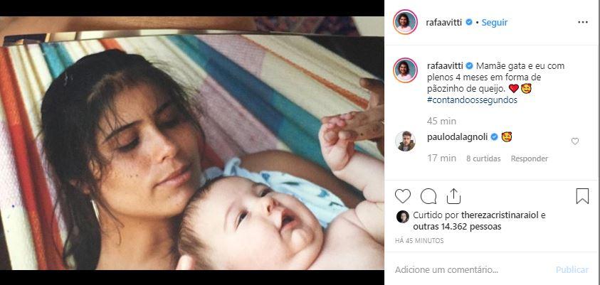 Rafael Vitti está super ansioso para a chegada da primeira filha. Na segunda-feira, 30 de setembro, o ator conquistou o coração dos seguidores ao publicar uma foto em seu Instagram relembrando a época em que ainda era bebê, ao lado da mãe Valéria Alencar.