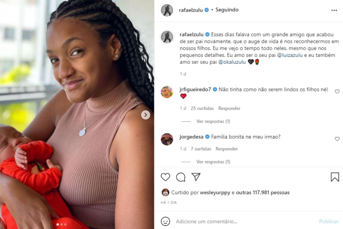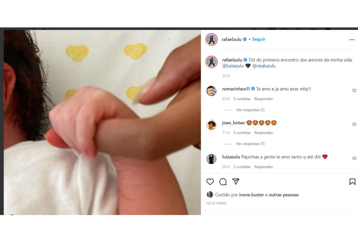 “Esses dias falava com um grande amigo que acabou de ser pai novamente, que o auge de vida é nos reconhecermos em nossos filhos. Eu me vejo o tempo todo neles, mesmo que nos pequenos detalhes. Eu amo ser o seu pai @luizazulu e eu também amo ser seu pai @okaluzulu”, escreveu ele na legenda do post.