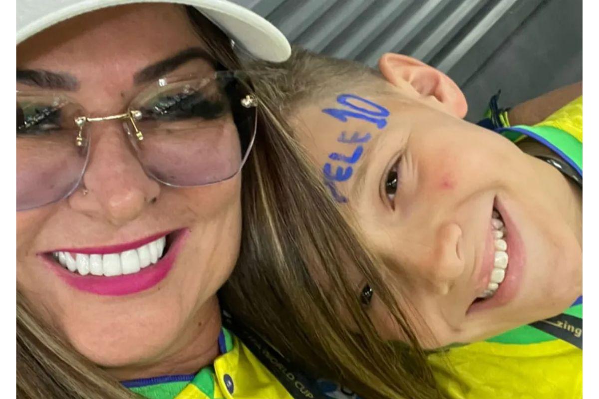 A mãe de Neymar, Nadine Gonçalves, usou as redes sociais para mostrar ela e o neto, Davi Lucca, torcendo pelo jogador na partida das quartas de final.