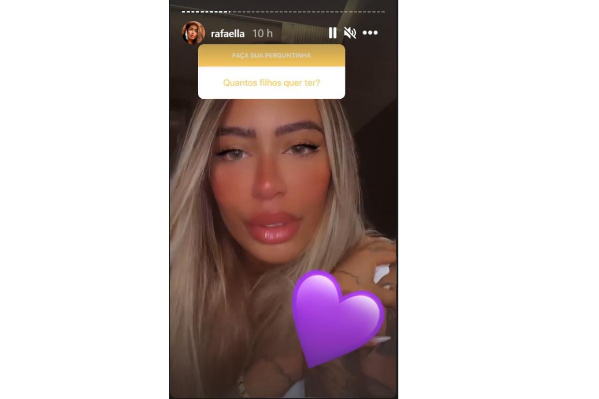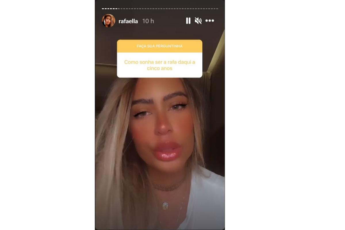 Ontem, 29 de janeiro, ela reservou um momento para conversar com os fãs e responder as dúvidas deles. Os seguidores enviaram as perguntas para as redes sociais dela e ela respondeu alguns desses questionamentos, um deles perguntou: “Como sonha ser a Rafa daqui cinco anos?” Ela contou que: “Eu me imagino casada, com três filhos, morando em um lugar… Sei lá… Em uma fazenda.” Um segundo internauta perguntou quantos filhos ela gostaria de ter. Ela contou que quer três filhos e falou sobre a vontade de ter “Dois meninos e uma menina, mas o que Deus mandar, vai ser bem-vindo.”