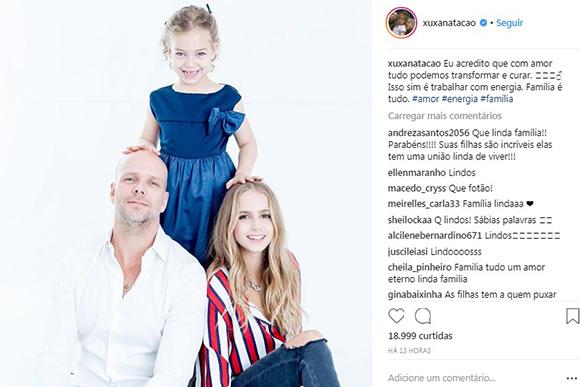 “Nada, mas nada nada nada é maior que o amor de pai e mãe. O que é melhor do que ver um filho sorrir? Nada, mesmo que tenhamos de ver eles indo embora, cada uma na sua idade e nas suas viagens, mas eu amo tanto que as deixo livre pra escolher seus vôos. Filhas o pai ama muito vocês! Gratidão”, declarou Xuxa.