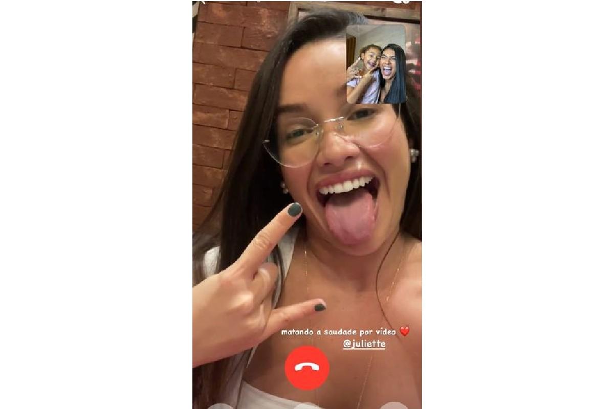 Na noite deste sábado (22), Pocah compartilhou nos stories uma foto da chamada de vídeo que fez com a vencedora do BBB 21, Juliette. E a ligação contou com uma presença especial, a de Vitória, filha da cantora.