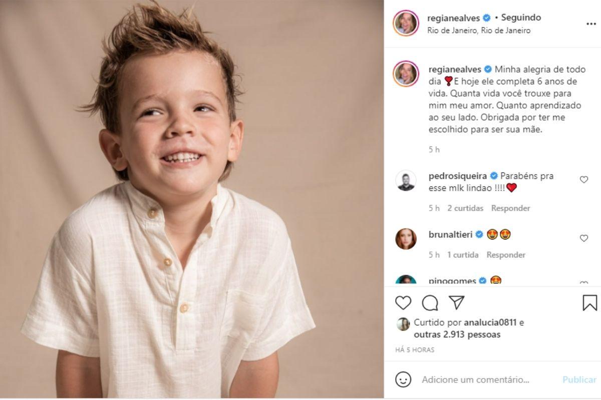 Regiane Alves usou as redes sociais nesta quinta-feira, 26 de agosto, para fazer uma homenagem especial ao filho caçula, Tom, que completou 6 anos! No Instagram, ela compartilhou uma foto do garoto e aproveitou para fazer uma declaração a ele.