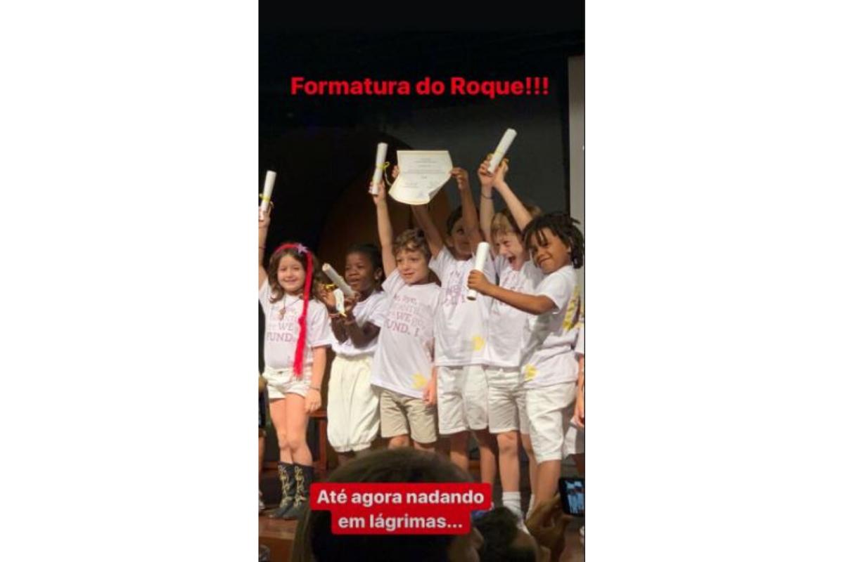 “Formatura do Roque, até agora nadando em lágrimas”, declarou a atriz na legenda da publicação, o menino é fruto do relacionamento de Regina com Estevão Ciavatta. Além de Roque, Regina também é mãe de Benedita, de 30 anos, sua filha com Luiz Zerbini.