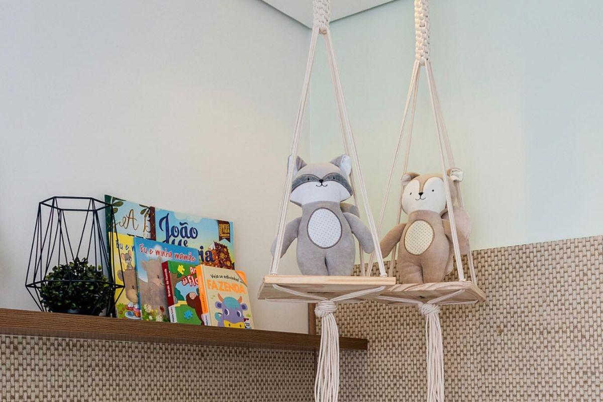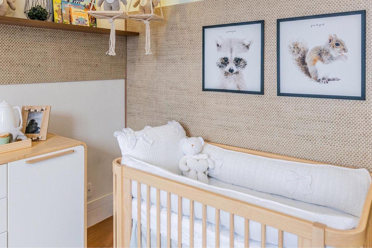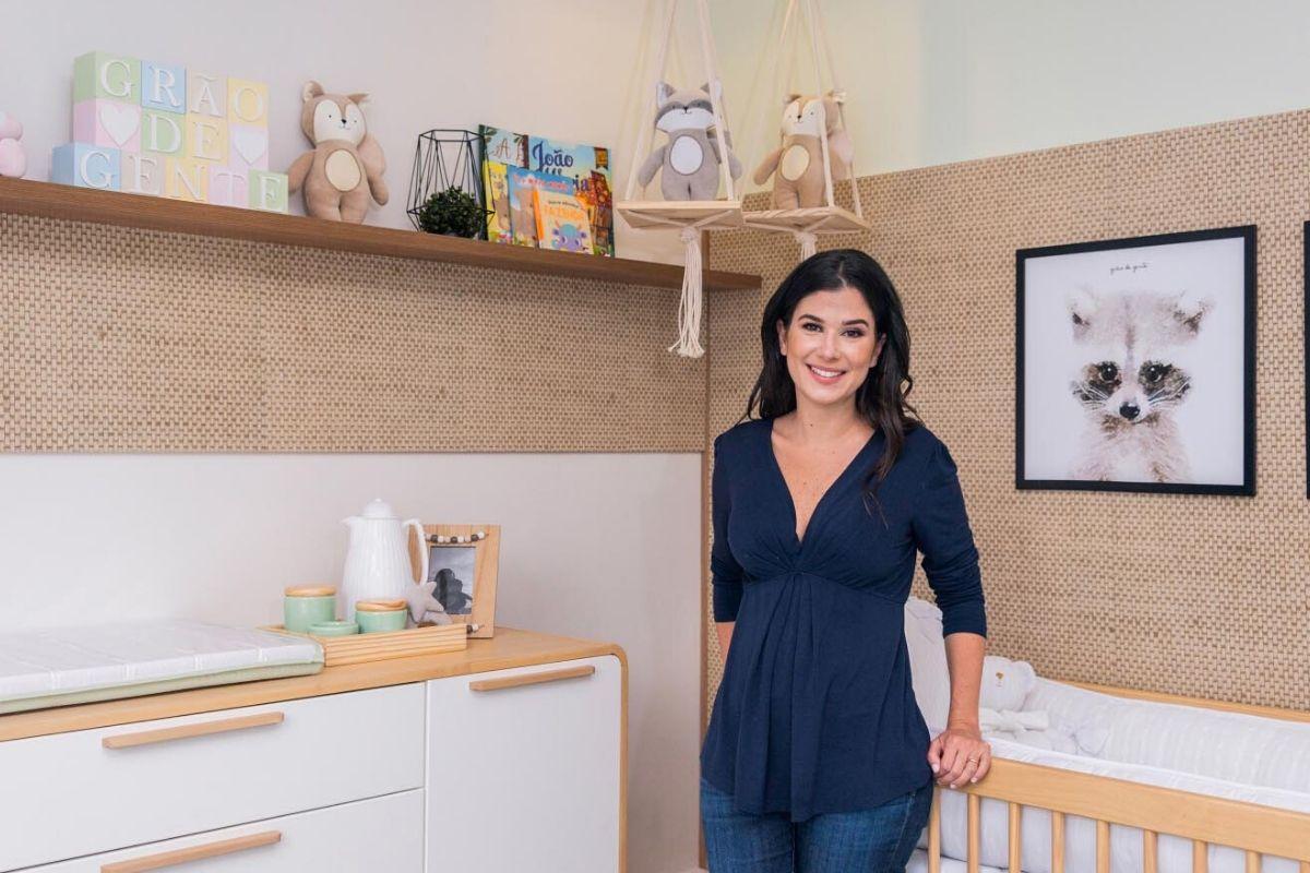 Para dar um toque exclusivo, foi usado também na decoração os bichinhos da floresta, que aparecem em pelúcias e quadros para completar o ambiente. “Eu amei, a Grão de Gente pensou em todos os detalhes, achei tudo tão gostoso. Acho que quarto de bebê tem que ser assim, um espaço protegido, limpinho, cheiroso, clarinho desse jeito. Ficou tudo tão lindo, mais do que eu imaginava, ficou impecável. É uma delícia estar aqui, acho que não vou sair desse quarto mais!”, concluiu.