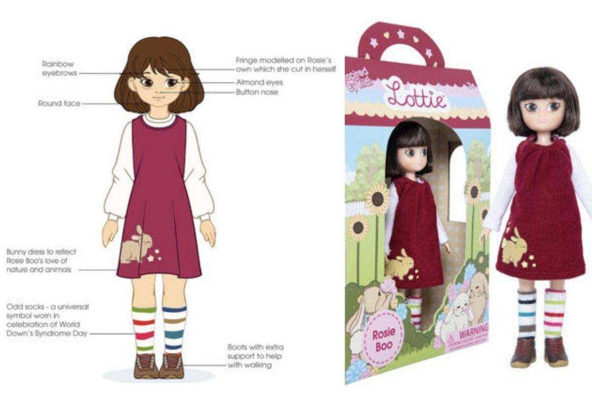 A boneca foi feita pela empresa Lottie Dolls para celebrar o Dia Internacional da Síndrome de Down (21 de março), Por isso, a boneca também usa meias coloridas diferentes, símbolo usado para comemorar a data. Jason Kneen, pai de Rosie, ficou muito emocionado pela família poder ajudar a criar consciência sobre a síndrome de Down.
