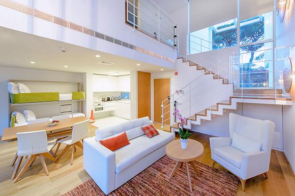 O Martinhal de Chiado é bem diferente dos outros, porque como fica no centro de Lisboa, a ideia é que a família aproveite os pontos turístico. Então são apartamentos com cozinha, sala, banheiro e quartos de diferentes tamanhos. Podendo receber, confortavelmente, até quatro adultos e três crianças.
