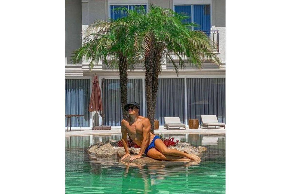 A casa de Rodrigo, construída em um enorme terreno, conta com um resort artificial e particular. A área de lazer da mansão tem, ao todo, duas praias artificiais. E tem mais: o fundo das piscinas são de areia, nada de azulejo.