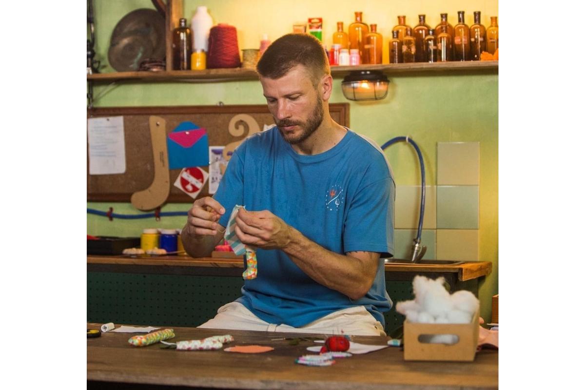 Durante as gravações do programa “Bem Juntinhos“, do canal GNT, o ator costurou uma boneca de pano para a filha Maria Manoela, de dois anos. Ele compartilhou o momento com dois registros, uma dele ao lado da filha e outra do processo de criação da boneca.