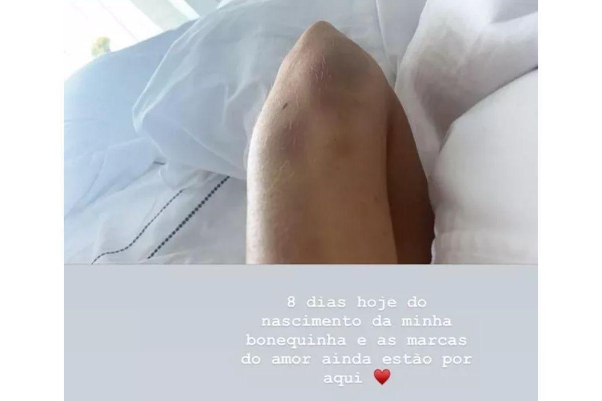 Romana Novais está curtindo os primeiros dias ao lado da filha, Raika. Depois do parto prematuro no último dia 2, com 32 semanas de gestação, a esposa do DJ Alok compartilhou pelas redes sociais uma foto dos hematomas que ganhou depois da situação. As complicações do nascimento da caçula foram causadas pela Covid-19.