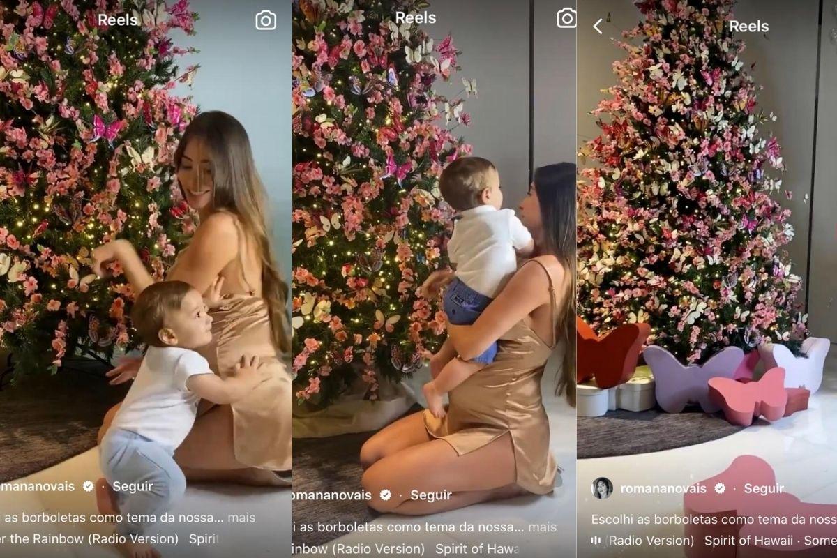 No Reels, ela mostrou a árvore que está montando, ao lado do primogênito Ravi, de 10 meses. A médica escolheu um tema para lá de inusitado e muito criativo! Romana está montando a árvore de “Borboletas”. “Escolhi as borboletas como tema da nossa árvore de natal esse ano. Borboleta significa transformação e inconstância. E esse ano realmente foi de muitas mudanças… é o símbolo da efemeridade da natureza e renovação também”, explicou.