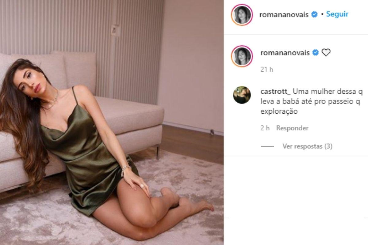 “Uma mulher dessa q leva a babá até pro passeio q exploração”, escreveu a seguidora. Romana explicou que o trabalho da babá era muito respeitado e, por isso mesmo, muito solicitado. “Exploração? Respeita o trabalho dos outros. Dessa forma você está desvalorizando. Ser babá é uma profissão e que aliás eu respeito demais”, escreveu a influenciadora, que está grávida de 4 meses. Ela ainda completou a ideia: “E alias, se ela topar ela vai cmg p/ todos os passeios e viagens! Reconheço o trabalho dela e a diferença que ela faz!”, disse.