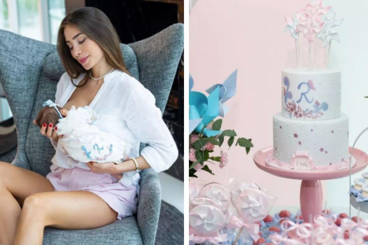 “Minha pequena já vai fazer dois meses”, legendou Romana ao compartilhar uma foto amamentando a filha e outra da decoração de uma festinha para ela em tons pasteis e decoração com cataventos, feita quando a Raika completou o primeiro mês de vida.