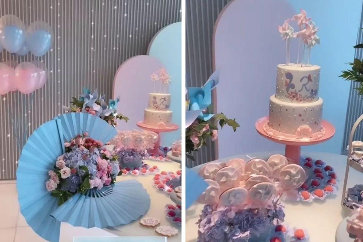 A organização contou com a paleta de cores claras, como azul, roxo e rosa. Veja os detalhes da decoração para você se inspirar!