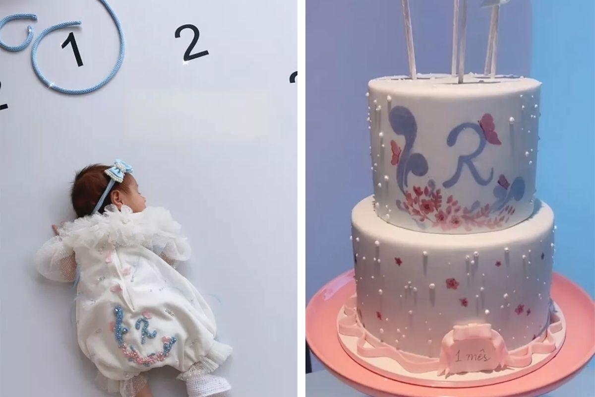 “Dia de fotos do mesversário. A minha bonequinha está com essa roupa mais linda”, babou a mãe, coruja. Romana, também mostrou uma mesa montada com bolo, doces e decoração, tudo em tons claros. A influencer ainda garantiu que celebrará todos os meses de Raika com um painel de relógio, para as fotos.