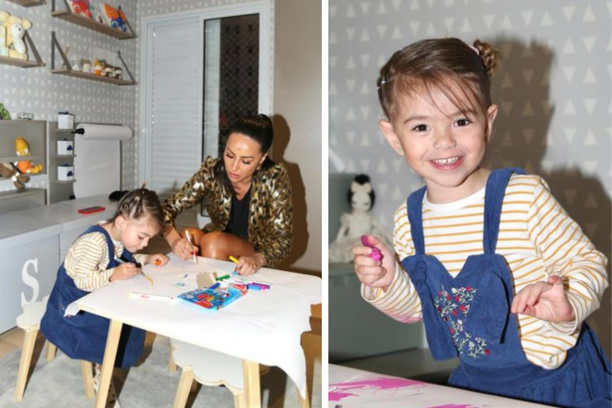 Sabrina Sato usou as redes sociais neste sábado, 28 de maio, para compartilhar fotos de um momento cheio de amor ao lado da filha, Zoe, fruto do relacionamento com Duda Nagle. Nas fotos, a apresentadora aparece sentada em uma mesa infantil brincando com a filha.
