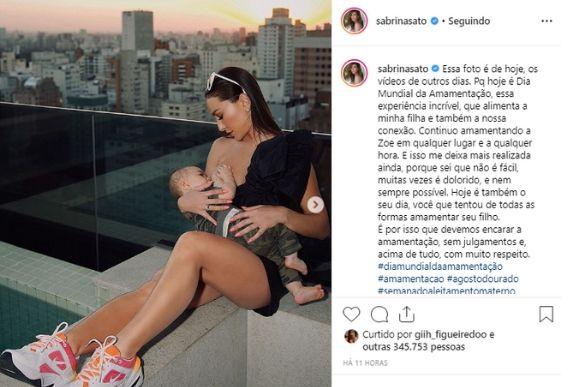 Sabrina Sato ainda amamenta Zoe e tem muito orgulho disso (Foto: Reprodução/Instagram @sabrinasato)