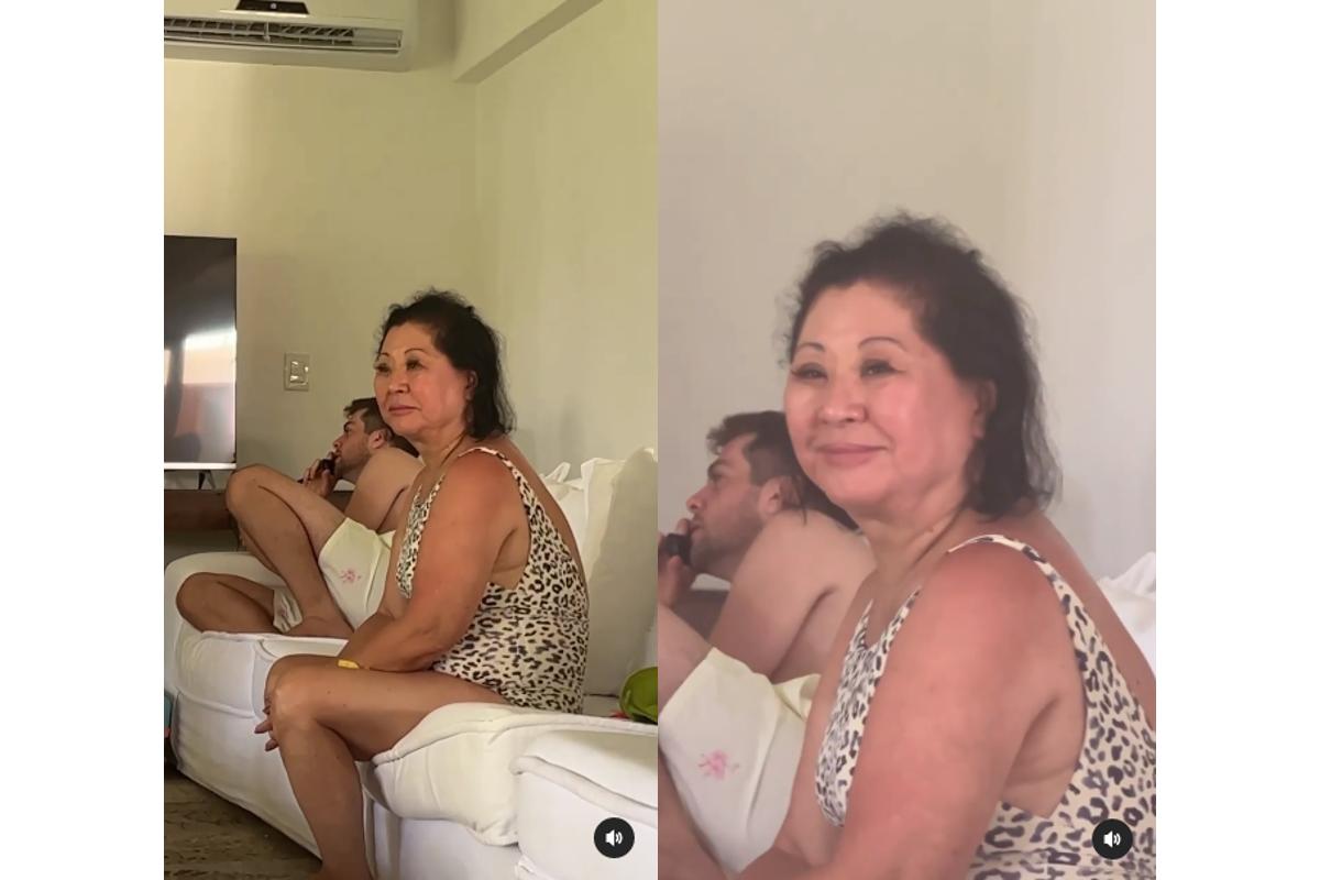 Apresentadora postou um registro de sua mãe, Kika Sato, de 69 anos, se recuperando de uma noite daquelas.