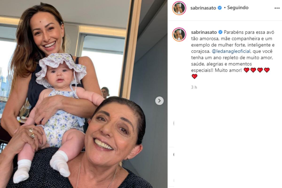 “Parabéns para essa avó tão amorosa, mãe companheira e um exemplo de mulher forte, inteligente e corajosa. @ledanagleoficial, que você tenha um ano repleto de muito amor, saúde, alegrias e momentos especiais!! Muito amor!”, desejou Sabrina.