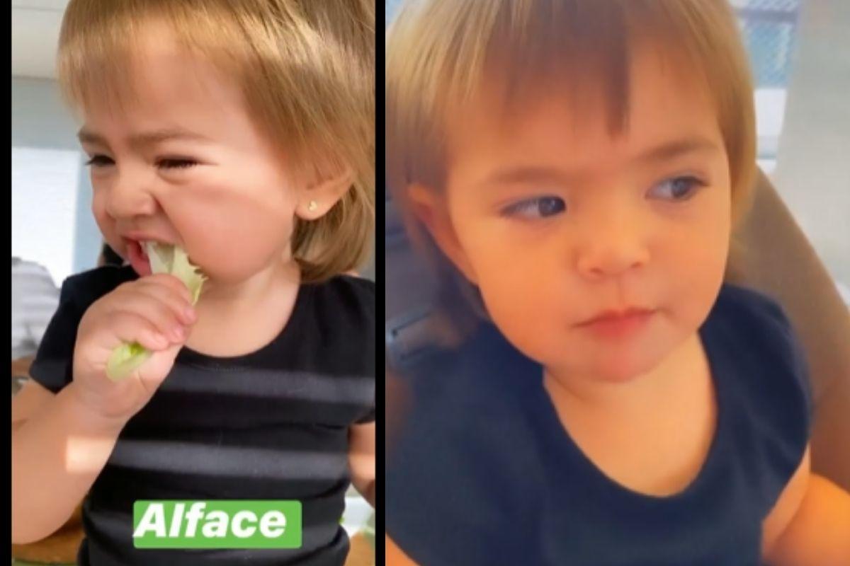 Em seu Instagram, Sabrina mostra Zoe fazendo careta ao experimentar algumas opções.  “Pra você que vai começar uma dieta mais saudável amanhã, faça como a Zoines e não desista”, brincou a mãe na legenda da publicação.