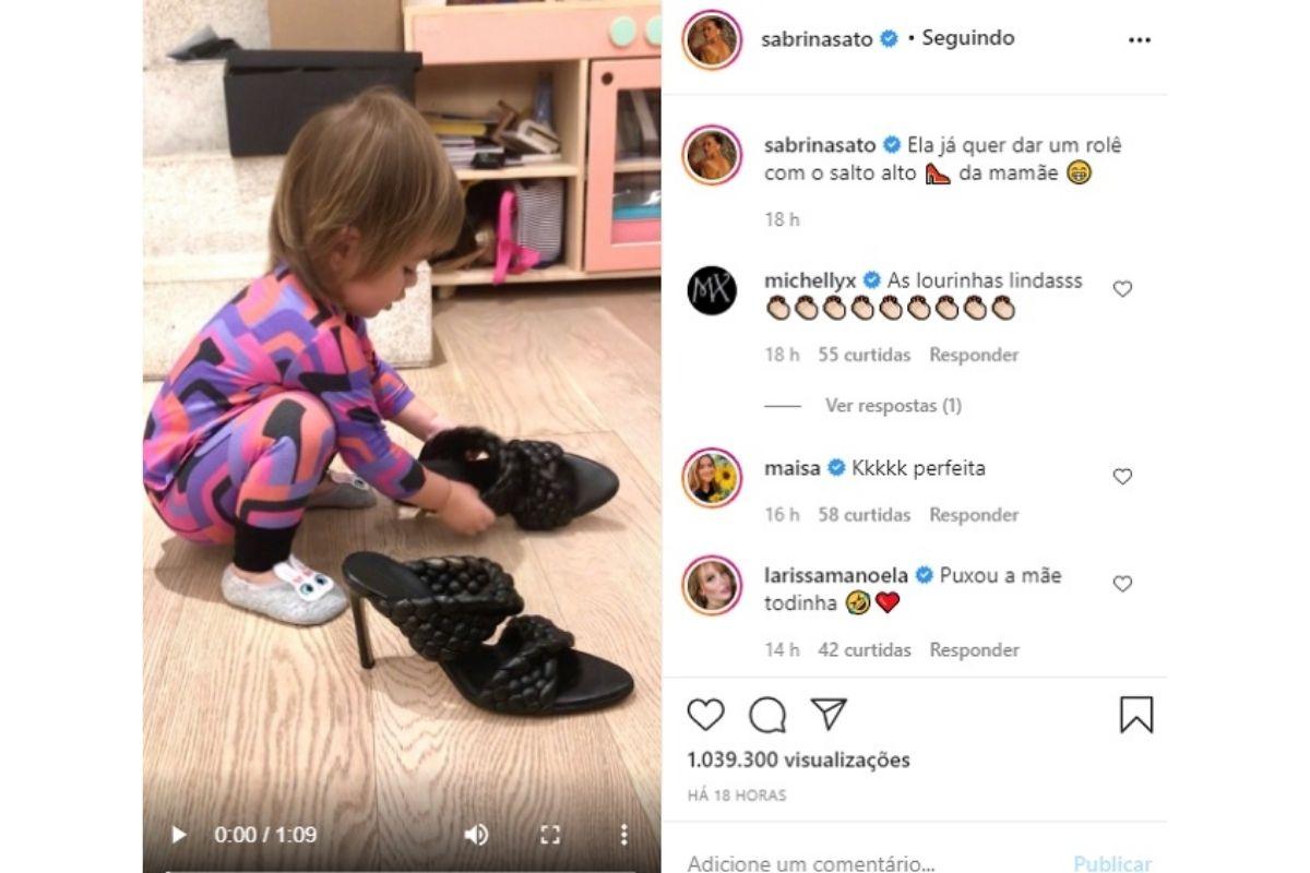 Nas redes sociais, Sabrina Sato sempre compartilha diversos momentos da filha Zoe, de um ano, fruto do relacionamento com Duda Nagle. Na noite deste último sábado, 15 de agosto, apresentadora atualizou toda e qualquer definição de fofura ao mostrar a filha dando os primeiros passos em cima de um salto alto.
